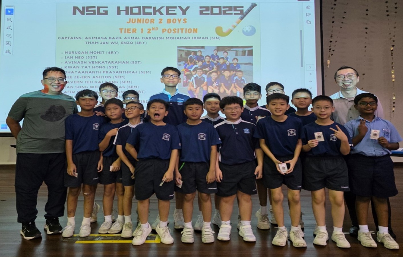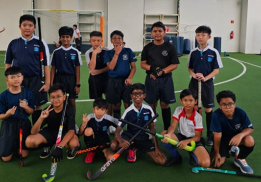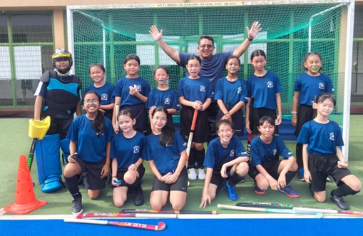 The hockey team members are trained in fundamental hockey skills and participate in team games tailored to their age groups: 3v3 for Primary 4 pupils, 5v5 for junior teams (Primary 5 pupils), and 6v6 for senior teams (Primary 6 pupils). In addition to the regular Tuesday morning training sessions during CCA periods, selected pupils who are part of the school team will undergo additional training on Tuesday and Friday afternoons, with each session lasting two and a half hours. Our hockey members also actively participate in friendly matches and competitive events organized by the school, other institutions, external hockey clubs, and in inter-school competitions, including the National School Games.