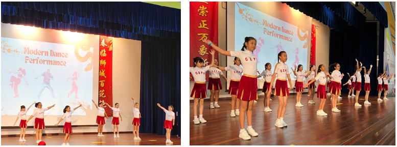 Beyond training, our dancers have proudly showcased their talents at platforms such as Chinese New Year celebrations, National Day celebrations, and the CZ40 Musical 2025. These meaningful opportunities enable them to grow in confidence, resilience, and creativity, while cultivating leadership qualities and teamwork. More than just a performing art, modern dance at Chongzheng empowers our students to express themselves with grace, passion, and discipline—qualities that will serve them well both on stage and in life.