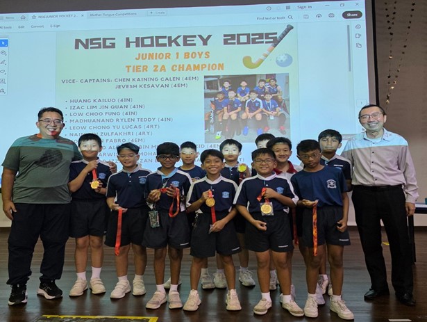 The hockey team members are trained in fundamental hockey skills and participate in team games tailored to their age groups: 3v3 for Primary 4 pupils, 5v5 for junior teams (Primary 5 pupils), and 6v6 for senior teams (Primary 6 pupils). In addition to the regular Tuesday morning training sessions during CCA periods, selected pupils who are part of the school team will undergo additional training on Tuesday and Friday afternoons, with each session lasting two and a half hours. Our hockey members also actively participate in friendly matches and competitive events organized by the school, other institutions, external hockey clubs, and in inter-school competitions, including the National School Games.