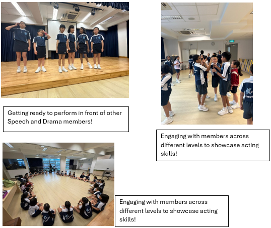 Our Speech and Drama CCA is a vibrant and engaging club committed to cultivating students' confidence, creativity, and performance abilities. Through a variety of hands-on activities—including rehearsals, professional coaching, and opportunities to perform on stage—members are empowered to express themselves, develop essential public speaking skills, and grow as performers in a supportive and inspiring environment.
