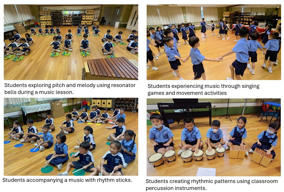 At Chongzheng Primary School, our Music curriculum nurtures every child’s innate musical potential through engaging and meaningful learning experiences. Guided by the musical processes of Listening, Creating, and Performing, students explore diverse genres and traditions while developing 21st Century Competencies. Our aim is for students to build strong musical skills and understanding of key concepts, while deepening their appreciation of Singapore’s rich cultural heritage and the wider world of music. Above all, we want them to express themselves with joy, creativity, and confidence through music.